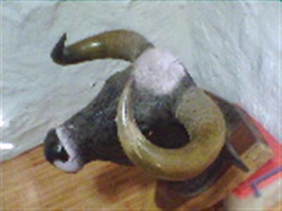 ขอถามผู้ที่มีความรู้เกี่ยวกับสัตว์ป่าหน่อยนะครับ ว่าในรูปที่เห็นเป็นสัตว์ชนิดใด ตาผมได้มาสมัยที่ท่านยังหนุ่ม แต่ตาผมท่านเสียตั้งแต่ผมยังไม่เกิด ผมก็เลยไม่รู้ว่าจะถามใครดี เพราะดูจากลักษณะของเขาแล้ว ไม่เหมือนกระทิงหรือวัวแดงเลยครับ