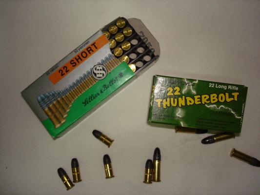 อุ๊บ....ลืมขออนุญาตคุณ ninja 19 เจ้าของภาพปืนก่อน ปืนแกสวยจริงๆ Black & White เลยนะนี่ เอาภาพกระสุนทั้งสองชนิดมาลงเปรียบเทียบให้ดูน่ะครับ ลูก .22 Short ในเมืองไทยราคาแพงไปหน่อยตั้ง 5 บาท/นัด คนขายบอกว่ามีคนใช้น้อย แต่จริงๆถ้าสั่งเข้ามาเยอะๆก็น่าจะมีคนใช้เยอะนะ เงียบดีออก