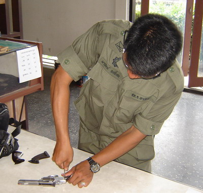 น้องกบ เจ้าหน้าที่สนาม วัดมาตรฐานไก วันนี้ใช้รีวอลเว่อร์