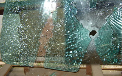 ผลการทดสอบกระจกรถยนต์ยุโรป ติดฟิล์มพิเศษ บอกว่ากันกระสุน หลังทดสอบขนาด .45 ลูกซ้อม ระยะ 15 เมตร ผลก็เป็นดังที่เห็น