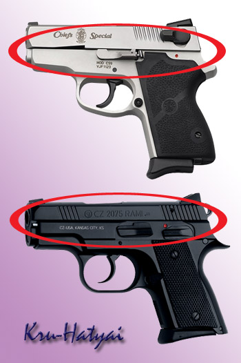 ส่วนยี่ห้ออื่น ท่านอาจจะพบว่าเป็นปืนสไลด์ครอบโครง ผลก็คือ ตรงกันข้ามกับที่กล่าวมาในเรื่องของ cz คือพื้นที่สำหรับวางนิ้วชี้ท่านจะน้อยลง