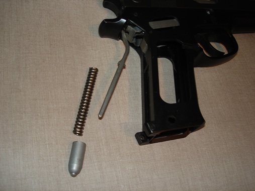 การเปลี่ยนสปริงนกสับให้อ่อนกว่าเดิม อาจทำให้เหนี่ยวไกนัดแรกแบบดับเบิ้ลเบาลงก็จริง แต่ผลเสียก็มี เพราะสปริงนกสับจะทำงานร่วมกับสปริงลำเลื่อน เพื่อต้านแรงสะท้อนถอยหลัง ถ้าเปลี่ยนให้อ่อนมากๆ สไลด์ปืนจะถอยมากระแทกโครงปืนแรงขึ้น ปืนอาจโทรมเร็วกว่าปกตินะครับ