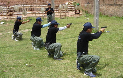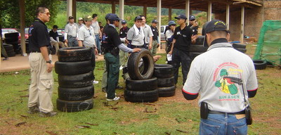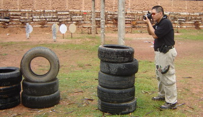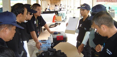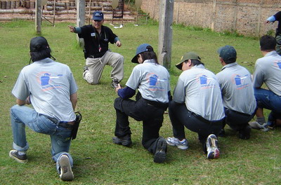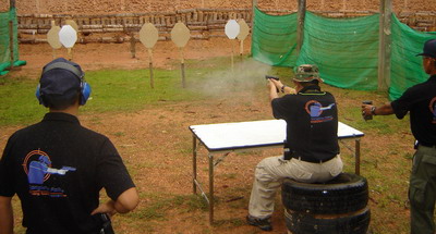ผู้อำนวยการฝึกฯ สาธิตการยิงในสนามที่ ๑ โดยเอาความรู้การยิงต่อเนื่อง(ดับเบิ้ลแท๊พ) ในท่าต่าง ๆ ที่ได้ฝึกไปแล้ว มาใช้ในสนามแข่งขัน IPSC