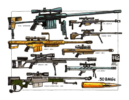 ปืนแอนตี้สไนเปอร์ขนาด .50 BMG.จึงถูกพัฒนาขึ้นเพื่อเก็บกวาดเหล่าสไนเปอร์ตามอาคารสูงพวกนี้ โดยเมื่อรู้ว่าพวกนี้ซุ่มตัวอยู่บนจุดไหนของอาคาร ก็ยิงถล่มผ่านกำแพงหรือฝาผนังเข้าไปเลยโดยไม่ต้องรอให้เห็นตัวชัดๆ ซึ่งกระสุนขนาด .50 BMG.สามารถทำได้ดีกว่ากระสุนปืนสไนเปอร์ขนาดอื่นๆในการยิงผ่านที่กำบัง