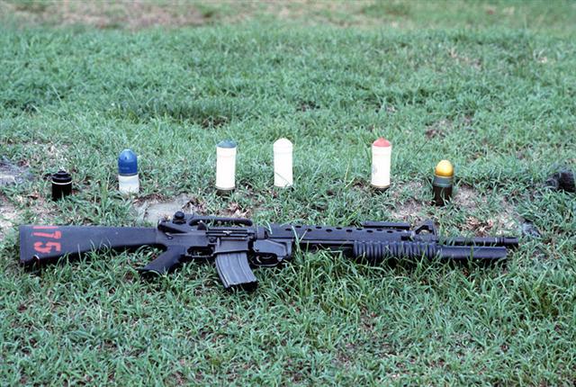 มันมีลักษณะคล้ายกับเอายางรถยนต์มาวางซ้อนกันแล้วเอาแผ่นโลหะพันครับ จุดประสงค์เพื่อดักเสียงที่วิ่งตามหลังลูกกระสุนและดักก๊าซบางส่วนด้วย ส่วนวัสดุที่ใช้ทำนั้นถ้าเป็นของปืน M4A1 จะทำด้วยโลหะไทเทเนียมผสมเหล็กกล้าครับ กดยิงแบบรัวยาวฟูลออโต้ได้ไม่มีปัญหาเรื่องกระบอกเก็บเสียงแตกครับ