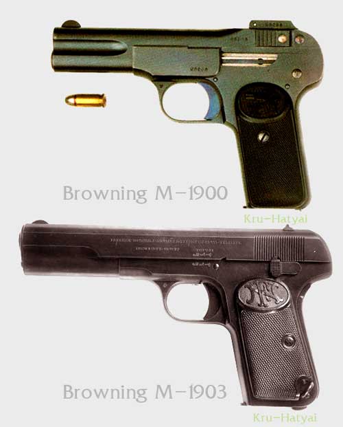 เท่าที่(ผม)ค้นดู...คิดว่า...ปืนกึ่งอัตโนมัติกระบอกแรกที่ใช้ Grip Safety หรือ "ห้ามไกหลังอ่อน" .... คือ Browning M-1903 ..... ครับ .... ออกแบบโดย John Moses Browning .... สร้างขึ้นช่วงต้นปี ค.ศ.๑๙๐๓ เป็นปืนกึ่งอัตนมัติ ทีใช้กระสุนขนาด .32 acp หรือ 7.65 mm. ครับ....สังเกตุในภาพที่นำมาให้ดู....กระบอกบนเป็น Browning M-1900 สังเกตุว่ายังไม่มี Grip Safety ... ครับ