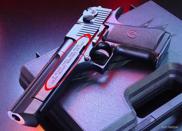 ตามลำดับ .50 AE / .45 ACP / 9 mm.Luger