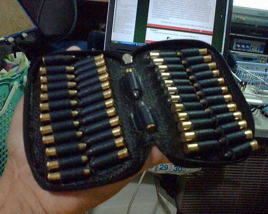 ในซองเก็บกระสุนของผม ผมเก็บไว้หลายแบบ หลายยี้ห้อมีทั้งหัวรู หัวทองแดง หัวตะกั่ว ไว้เลือกใช้ให้เหมาะกับสถานะการณ์ อีกอย่างผมกำลังทดสอบกระสุนว่ายี้ห้อไหนดีที่สุด สำหรับตัวผม