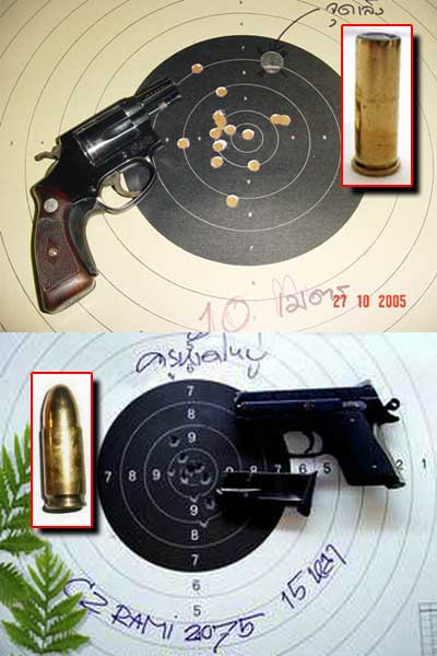 รอยกระสุนบนเป้าที่เห็นแตกๆเกิดจากพวกกระสุนหัวแหลมๆหรือมนๆเป็นทุกตัวครับ แต่ถ้าเป็นกระสุนหัวตัด.38 สเปฯ หรือพวกหัวตัดยักไหล่ .45 เอซีพี นี่จะตัดขอบคมเห็นเป้าชัดเจนแบบคุณครูหาดใหญ่ว่าแหละครับ และเหมาะกับการยิงเป้าที่สุด ส่วนการทำลายล้างหมายถึงการเจาะเป้าหมายได้ลึกและขยายหน้าตัด หรือทำลายเป้าหมายที่ยิงไปได้มากแค่ไหนมากกว่าครับ