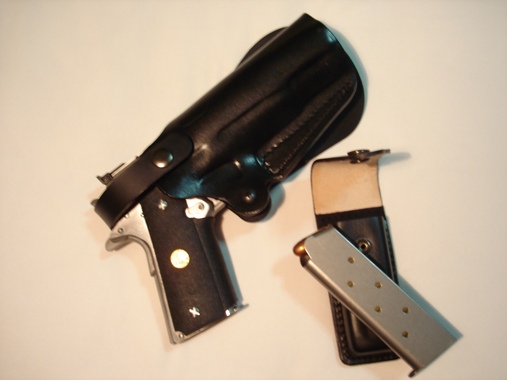 ซองปืนก็ใช้ของไทยทำ ซื้อจากร้านทำซองใกล้สี่แยก ข้างๆแบงค์กรุงเทพฯนั่นแหละ ราคาไม่ถึงพันบาท แต่ถ้าทางใช้คล่องตัวดี มีที่เสียบเอวแบบซองของโฟบัส คือไม่ต้องเสียเวลาร้อยเข้ากับเข็มขัด แถมยึดติดแน่นหนาเพราะมีสลักยึดกับขอบเข็มขัด ใส่เข้า ถอดออกได้เร็วทันใจโก๋แก่จริงๆ