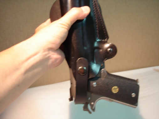 พกปืนแบบง้างนกเตรียมพร้อมเต็มที่ในซอง ก็ไม่ต้องกลัวปืนลั่น (ถ้าเผลอไปเหนี่ยวไก)เพราะมีสายคาดกันตกปิดท้ายเข็มแทงชนวนไว้ ซึ่งปืนรุ่นนี้มีสมอล็อกเข็มแทงชนวนแล้วไม่ต้องกลัวปืนลั่นหรอกครับถ้าไม่เหนี่ยวไก