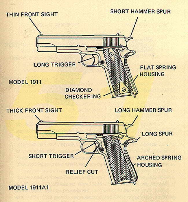 อยากทราบว่า 1911 .45 กับ 1911A1 .45 แต่ต่างกันอย่างไรครับ