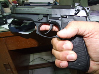 ผมสั่งจอง beretta 92 fscompact-l ของ สกสค. ทำสัญญาตั้งแต่ 28 ธันวาคม 48 สกสค. บอกให้เปลี่ยนปืนเป็น s&w ก็ไมได้เปลี่ยน ยืนความจำนงค์ว่ารอ beretta 92 fs compact-l แต่สุดท้ายรอไม่ไหวได้ข่าวว่าสามารถขอรับเป็นรุ่น brigadier แทนซึ่งเป็นปืนที่เหมือน 92 fs ตัวเต็มทุกอย่าง แตกต่างกันที่สไลด์ปืนมีความหนามากกว่าเนื่องปืนรุ่นนี้ออกแบบมาเพื่อรองรับขนาดกระสุน .40 ซองกระสุนบรรจุ 15 นัด ผมไปรับมาตั้งแต่ 26 พฤศจิกายน 50 ส่วนตัวแล้วผมชอบ brigadier ตัวนี้มากกว่าเพราะด้ามยาวกว่าประมาณ 5 มม. มากว่าตัว 92 fs compact-l ซึ่งทำให้การจับถนัดมือมากกว่า อีกอย่างผมเป็นคนตัวสูง สุดท้ายเป็นปืนที่ดีน่าใช้ที่สุด