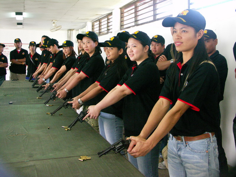 13.00 - 14.30 น. ฝึกการใช้อาวุธปืนพกระบบรีวอลเวอร์ (ขนาด .38 )