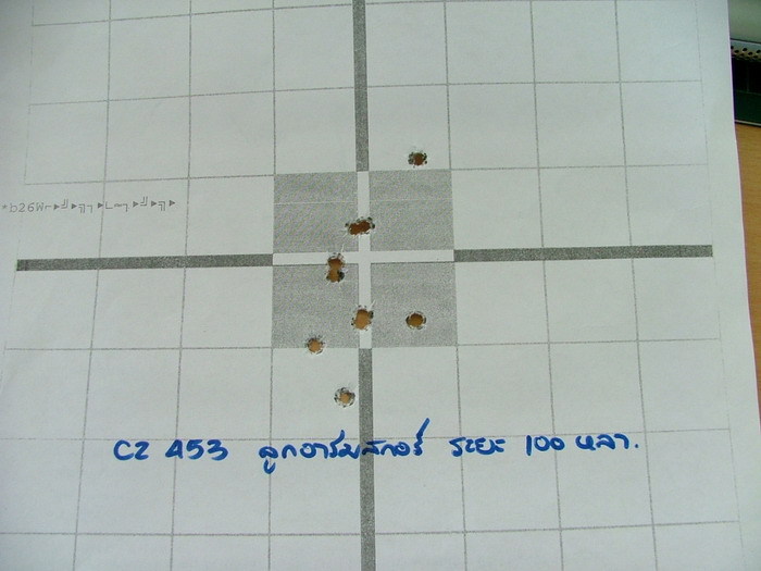 แต่ผมประทับใจในฝีมือท่านผู้ทดสอบในครั้งนี้มากครับ ที่ระยะ 100 เมตร ทำกลุ่มกระสุนได้ขนาดฝ่ามือบังมิดได้นี่ ไม่ธรรมดานะครับเมื่อคิดถึงปืนก็เป็นปืนที่ขายทั่วไปในท้องตลาดไม่ได้ตกแต่งพิเศษมากมาย กระสุนก็ยิ่งแล้วใหญ่ ไม่ใช่กระสุนระดับแข่งขันแต่เป็นของที่ผลิตในประเทศเพื่อนบ้านเรานี่เองคือฟิลิปปินส์ เยี่ยมมากครับ