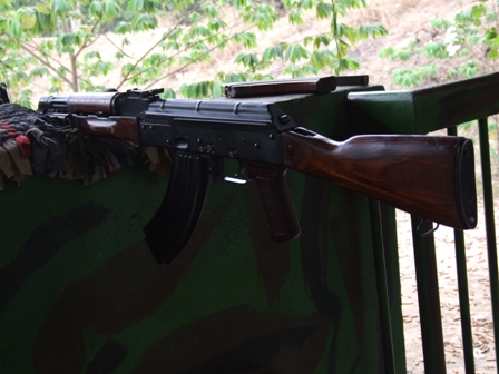 ส่วนปืนในภาพเราเรียก AKM นะครับ ลองสังเกตให้ดีว่า AK-47 ต่างจาก AKM ตรงไหนบ้างครับ