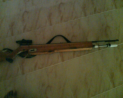 ผมหารูปมาให้ดู นี่ปืนลมไทยยิงลูกดอกที่ทำจากซี่จักรยาน ลูกดอกติดเอ็นมีคนทำกันหลายคนแล้วต้องลองดู