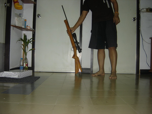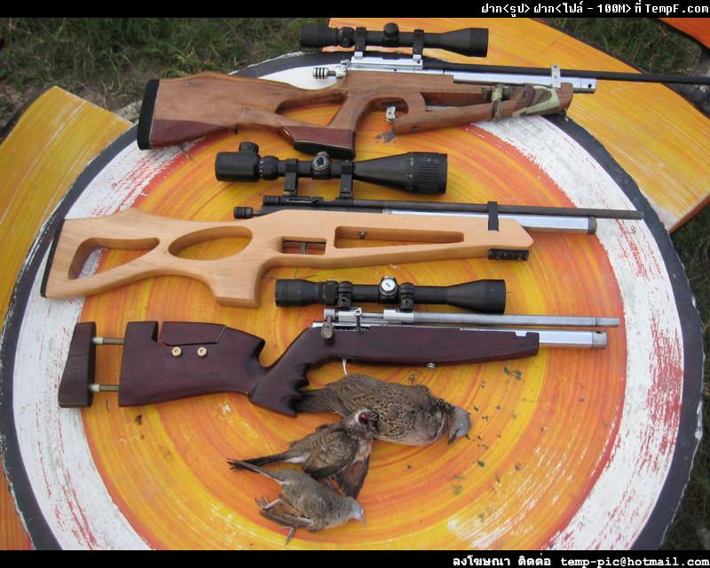 "ปืนลมสามกระบอกที่กองๆกันอยู่มันเป็นปืนของน้องผม ที่อยู่แถวๆ กทม แหละ น้องผมทำสวยไหมหละ "