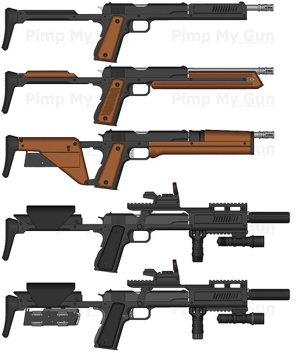ต่อลำกล้องแล้วจับยัดใส่สต๊อกล็อคเสร็จก็กลายเป็นปืนยาวแบบCZหรือรูเกอร์สพายไปไหนก็ปืนยาวดีๆนี่เองเมื่อวาน