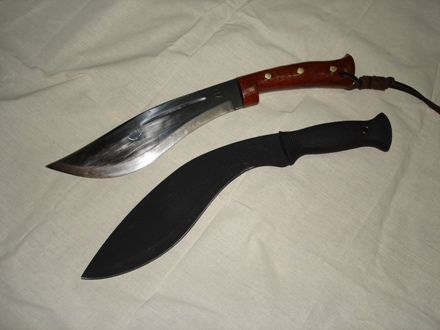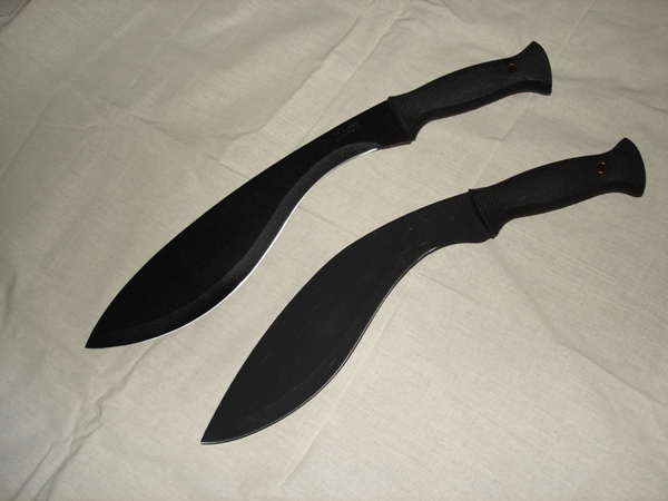 ปืนหมดกรุแย้ว ได้แต่ขุดมีดมาให้ดู ไปเดินเล่นแถวคลองถม เห็นคุครีเล่มเล็ก เลยหยิบมาเข้าคู่กับเล่มใหญ่ซะ เป็นของทำเลียนแบบ Cold Steel องศาของเล่มเล็กนี่งุ้มมากกว่าเล่มใหญ่หน่อย สั้นกว่านิดนึงแทบดูไม่ออก แต่พอจะใช้เหน็บเอวเดินป่าไหวนะ ว่ามะ?