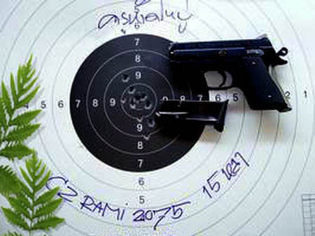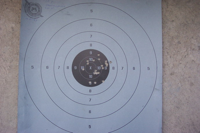 ผมยิงประเดิมเลยครับ วันที่ 16 ก.พ.49 ก่อนเที่ยงที่สนามตำรวจวิภาวดี 62 ใช้ M60 ไม่มีขีด ขนาด 2 นิ้ว กระสุนหัวตัดของบุลเลต มาสเตอร์ ปลอกเก่า มีนัดหนึ่งเจาะกระดาษไม่คม เป็นนัดแรกๆ ครับ สงสัยลำกล้องยังสะอาดอยู่ ครับ