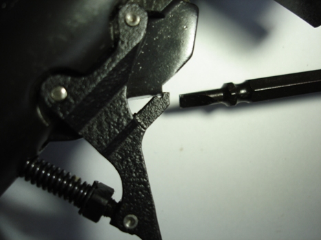 สวมเข้าในแกนไกปืน (หมุดตัวที่ 3 ที่ตอกออกไม่ได้นั่นแหละครับ) เสร็จแล้วใช้คีมบีบให้หลอดหุบกลับมาหุ้มแกน