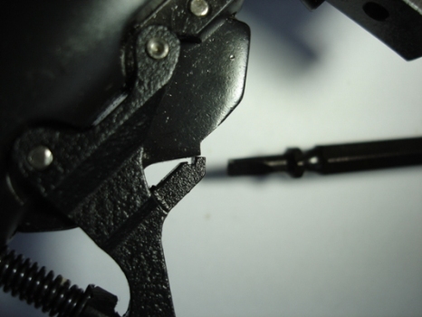 แต่ถ้าลองขึ้นลำเลื่อนดูแล้วเซียร์มันเกาะกับแง่ ก็เป็นอันใช้ได้(ดูตามภาพ) เอาปลอกกระสุนเปล่าใส่ในรังเพลิงแล้วทดลองเหนี่ยวไกดู จะพบว่า ระยะลากไกสั้นมาก เหนี่ยวเข้ามานิดเดียวปืนก็ลั่นแล้ว เรียกว่าไกคมขึ้นกว่าเดิมมากแต่ไม่ทำให้ไกเบาขึ้น