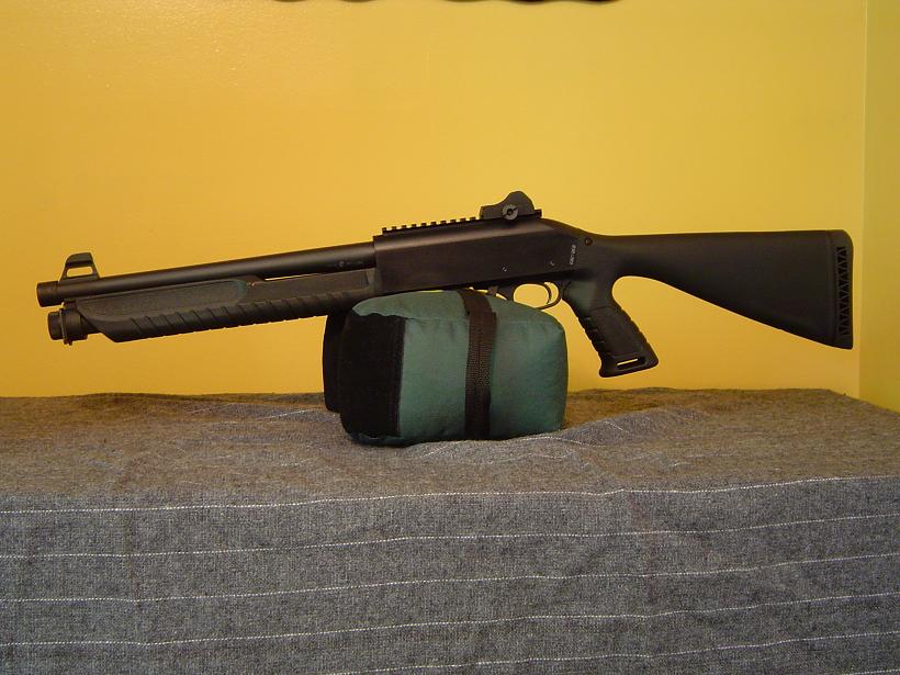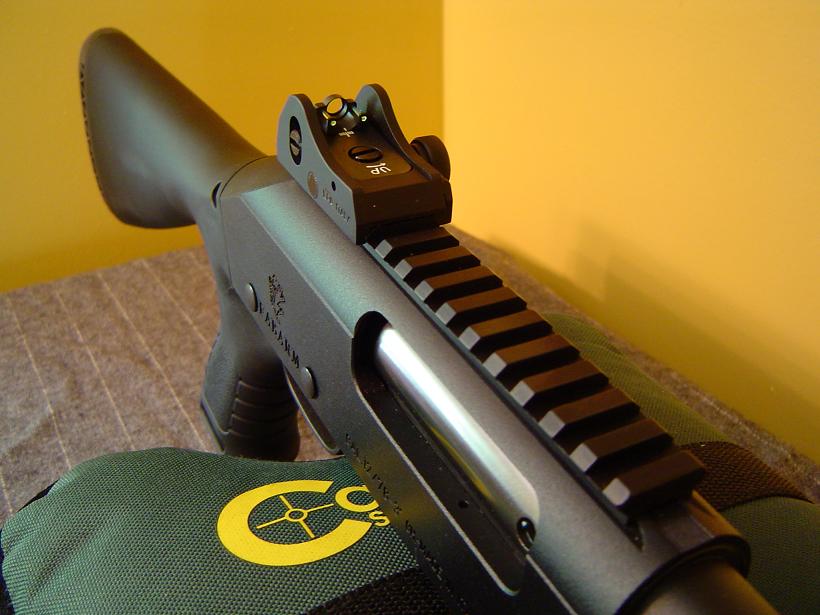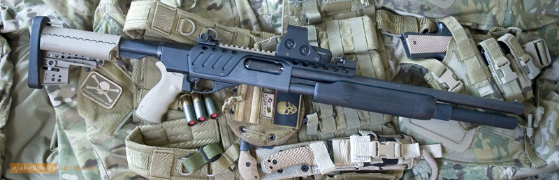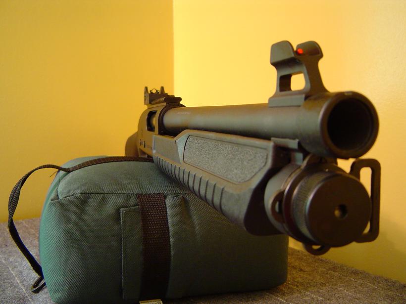 มองมุมนี้ดูขนาดความสั้นของลำกล้องซิครับอย่างนี้ทำให้นึกถึงลูกซอง Entry Gun เอาไว้ยิงในที่ไม่กว้างนักวาดเป้าคร่าว ๆ หรือปะทะกันตามมุมตึกจ๊ะเอ๋ก็ยิงเลย แต่พอติดลำกล้องเสริมเข้าไปก็จะยิงได้ระยะไกลขึ้นอีกเข้าไปยิงในสวนในป่าได้สบาย นี่ซิผมถึงบอกว่าอเนกประสงค์สมชื่อปืนลูกซองจริง ๆ