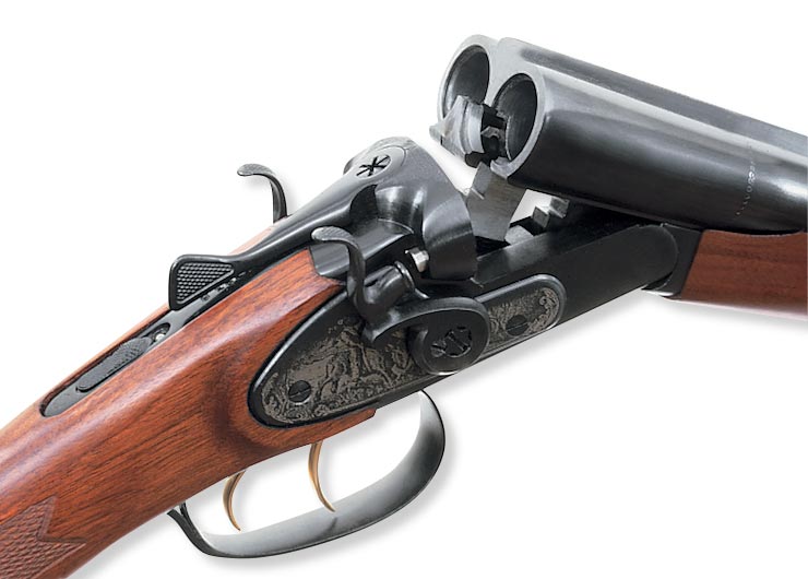 ส่วนถ้าเป็นปืนนกในเมื่อบรรจุกระสุนและหักลำกลับเข้าที่จะเป็นการง้างนกรอไว้ แค่เข้าเซฟที่คอปืนก็ป้องกันปืนลั่นได้แล้ว โอกาสที่เซฟจะถูกปลดโดยไม่ตั้งใจน่าจะยากกว่าเพราะปุ่มเซฟมันเล็กนิดเดี่ยว ปลดเซฟปั๊ปก็เลือกเหนี่ยวไกได้ทั้งสองลำกล้องเลย(แต่อย่าเหนี่ยวพร้อมกันนะฮ้า...!!!)