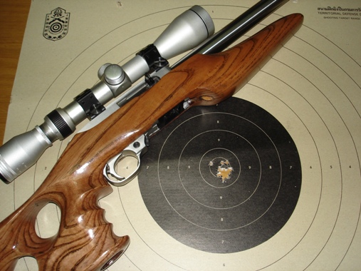 รุ่นนี้เป็นรุ่นยิงเป้าแบบพาดยิงนะครับ เพราะลำกล้องหนักเหลือกำลัง แต่จะได้กลุ่มกระสุนสวยงามเป็นกระจุก ประทับใจมากๆ แต่ต้องลองกับกระสุนหลายๆยี่ห้อว่าปืนมันชอบกระสุนยี่ห้อไหนเป็นพิเศษ โดยมากรูเกอร์ 10/22 มักชอบกระสุนของ CCI Standard หรือไม่ก็ Eley ของ Winchester หัวแดงที่แถมมามันความเร็วสูงไปหน่อย แต่กลุ่มก็ใช้ได้ครับ