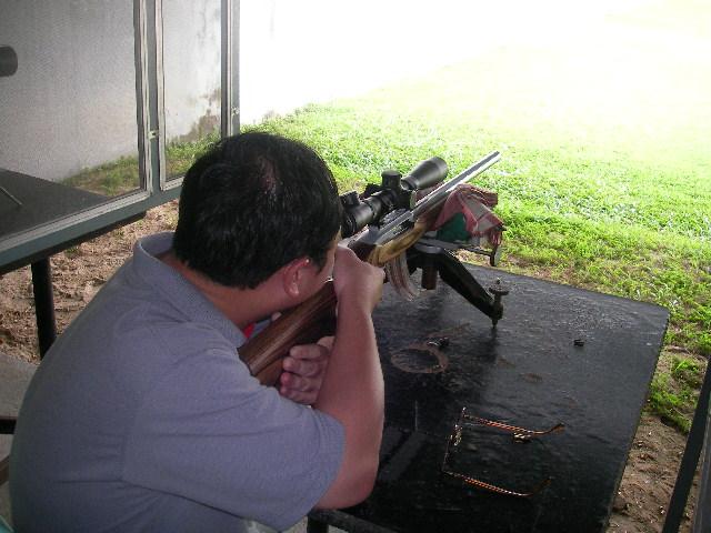 ส่วนการพาดยิงให้นิ่ง นอกจากพาดแท่นด้านหน้าแล้ว ด้านหลังตรงใต้พานท้ายควรหาหมอนหรือถุงทรายมารองไว้ด้วย จะทำให้กลุ่มกระสุนแน่นขึ้นมากครับ เอามือรองแบบนั้นมันเมื่อยแถมขยับขึ้นลงได้อีก กลุ่มเลยไม่แน่นเท่าที่ควร