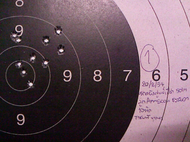 คือพาดยิงศูนย์เปิด เพราะเคยติดกล้องแล้ว ผลมันแย่กว่านี้ แล้วตาก็ยังพอมองเห็นเป้าที่ระยะนั้น