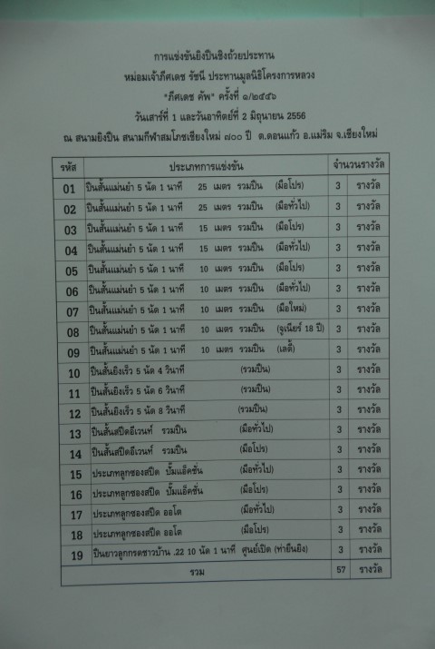 สวัสดีครับ แจ้งข่าวการแข่งขันกีฬายิงปืนชาวบ้าน " ภีศเดช คัพ " ครั้งที่ 1/2556 ถ้วยท๊อบกัน.........แล้วครับผม มี 20 ถ้วยครับ