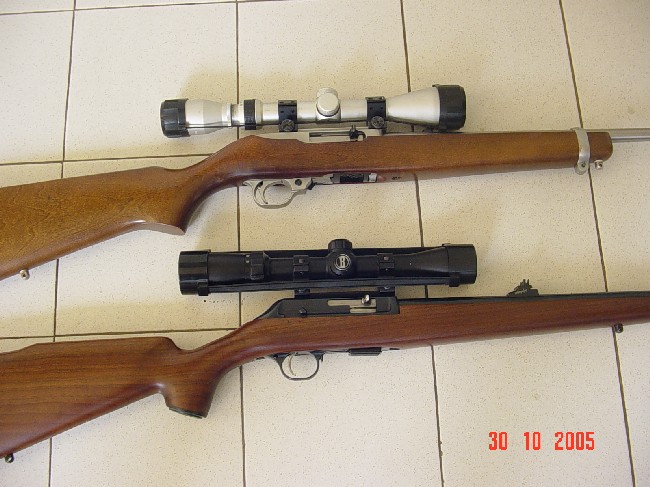 ตัวบนคงรู้จักกันดี รูเกอร์ 10/22 ยอดนิยม ผมพยายามหาลำกล้องของวอลควอทเซนมาเปลี่ยน ไม่ทราบใครมีเหลือๆบ้างไหมครับ แบ่งๆมาหน่อยซิครับ ตัวนี้ผมมือบอนไปแต่งเซียร์เอง ผลออกมาเซียร์ล้ม ยิงที่พ่นออกมาสองนัดซ้อน เลยต้องเสียตังค์ซื้อชุดไก+เซียร์ของวอลควอทเซนมาเปลี่ยนหมดไป 5,000 บาท เข้าตำรา เสียน้อยเสียยาก เสียมากเสียง่าย