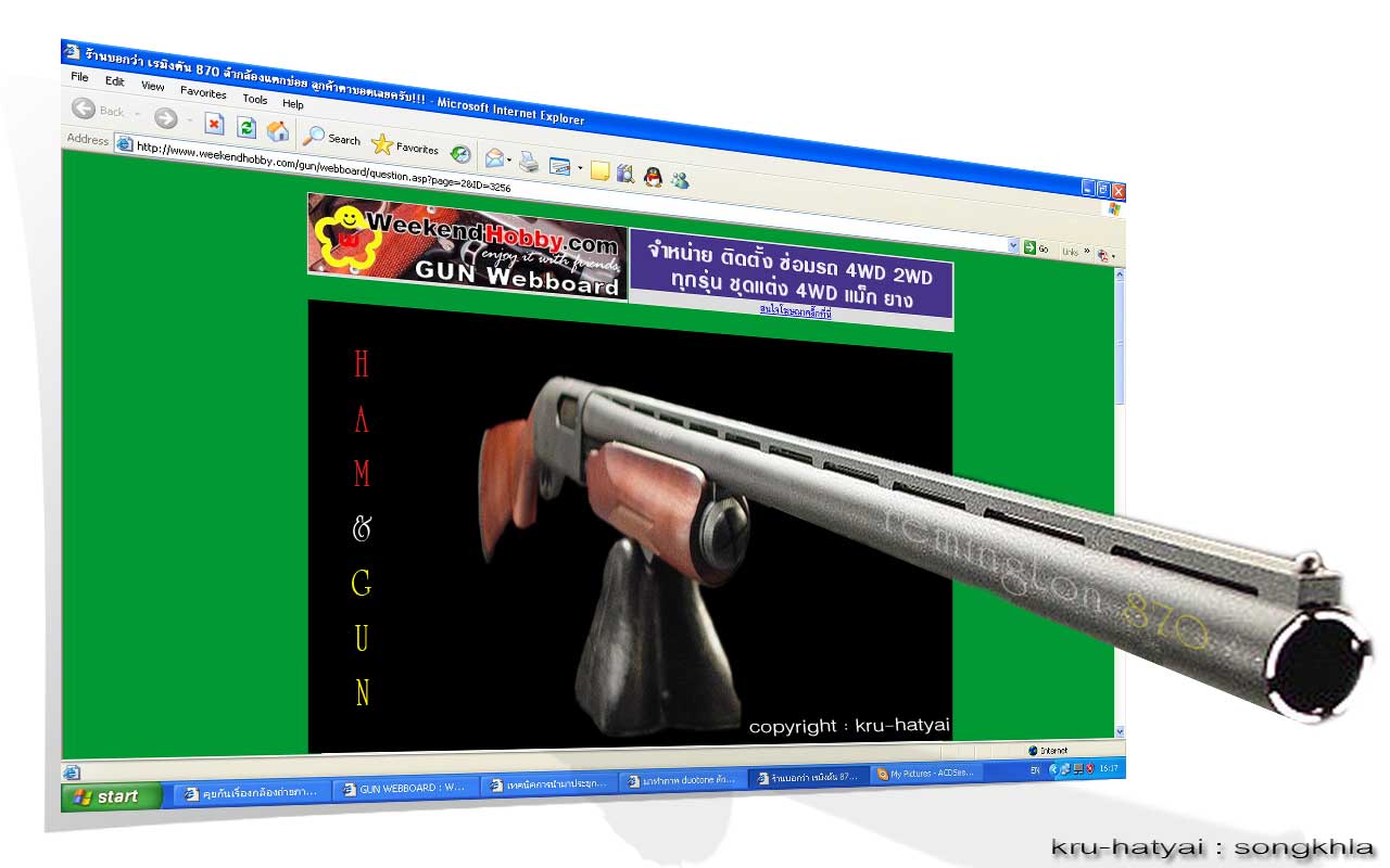 ปืนผมลูกซองผมก็มีปัญหากินซ้าย คือพบยิงกลุ่มลูก bb จะกินซ้ายนิด ๆ ถือว่าเป็นปกติไหมครับ และจะแก้อย่างไรได้บ้างครับ ... จาก นาย 203.146.245.162 จันทร์, 16/10/2549 เวลา : 12:44