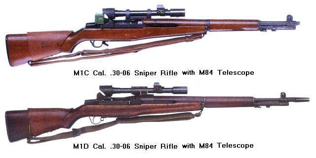 ปืน M1 Garand แบบซุ่มยิง รุ่น M1C และ M1D ติดตั้งกล้องเล็ง M84 โดยรุ่น M1D จะมีปลอกลดแสง T-37 ครับ ดูแล้วคล้ายปืนไรเฟิลอัตโนมัติ M14 จริงๆครับ