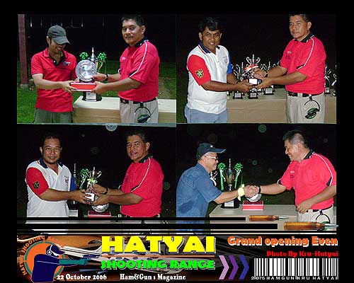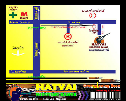 วันอาทิตย์ที่ 22 ต.ค. 49 ชาว ham&gun ร่วมแสดงความยินดีกับ พ.ต.อ.โพธ สวยสุวรรณ ผกก.สภอ.หาดใหญ่ ที่ปรึกษาชมรมฯ .... ในโอกาสที่เปิดสนามยืงปืนแห่งใหม่ เพื่อบริการ ปชช.ทั่วไป .... โดยงานนี้ได้รับเกียรติจาก พล.ต.ต.ไพฑูรย์ พัฒนโสภณ ผู้บังคับการตำรวจภูธร จังหวัดสงขลา เป็นประธานเปิดงาน มีนักกีฬาและผู้สนใจทั่วสารทิศเข้าร่วมงาน .... ชาว ham&gun ขอให้กิจการ-กิจกรรมของสนาม ... จงเจริญรุ่งเรือง ตราบนาน...เทอญ...
