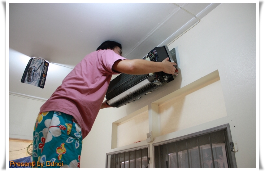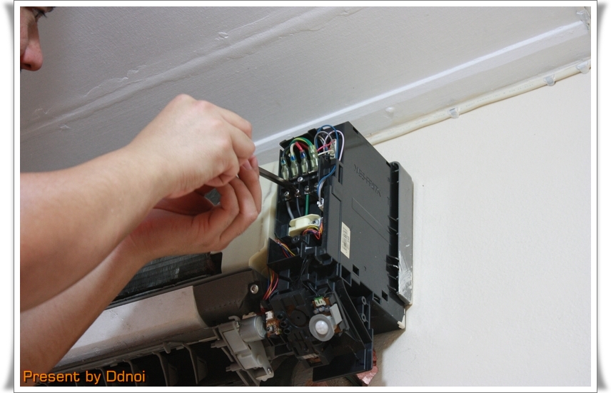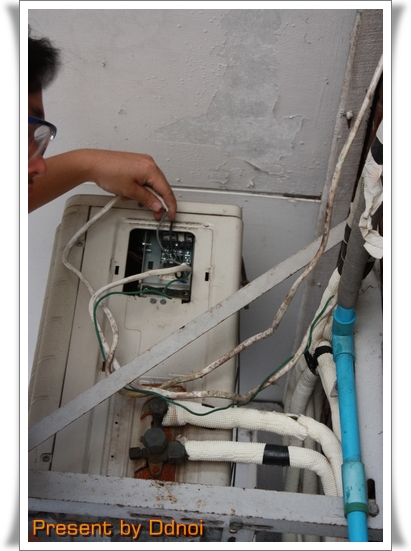 เสร็จแล้วก็ ถอดสายไฟออก (ปล. ยกเบรกเกอร์ ลงด้วยเดอร์....)