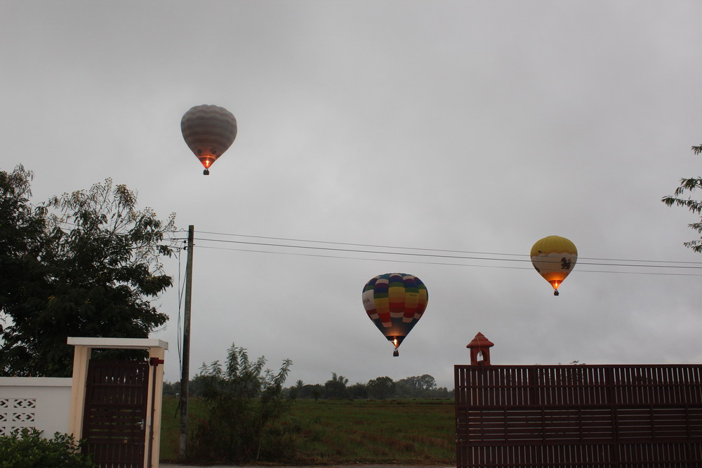 เช้าวันจันทร์นี้ ฟ้าปิด เมฆ-หมอกเยอะมาก มาชมบอลลูน ลอยผ่านม่านหมอกใกล้ๆบ้านนะครับ