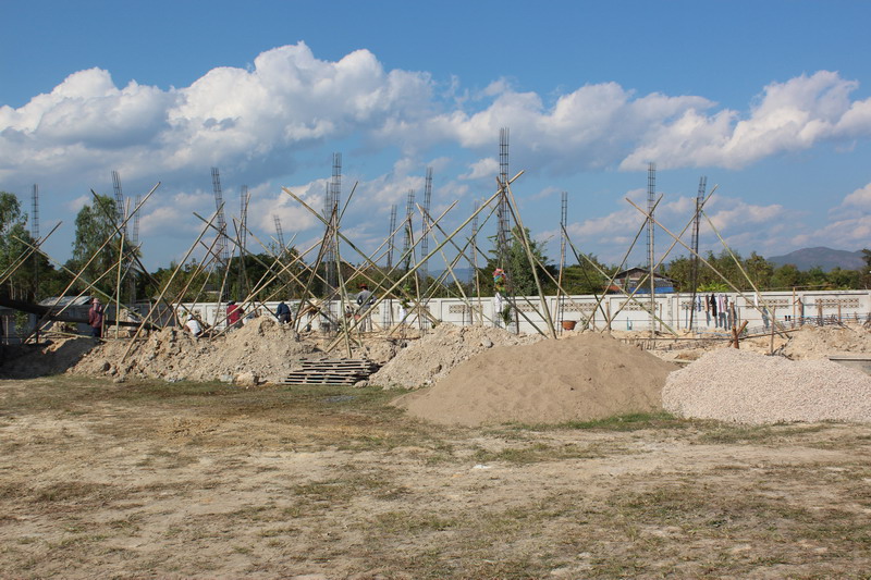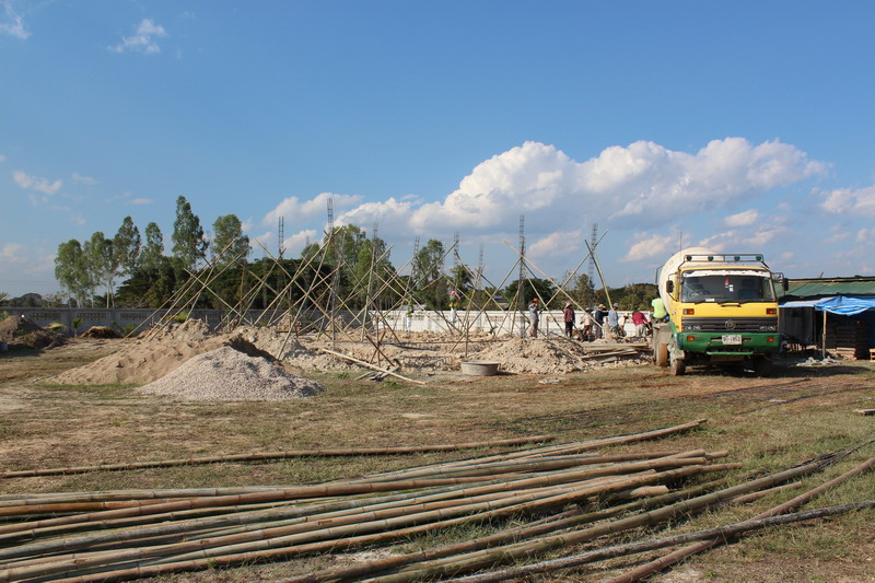 เสามงคลขึ้นแล้ว ต่อด้วยเสาบริวารในวันเดียวกัน