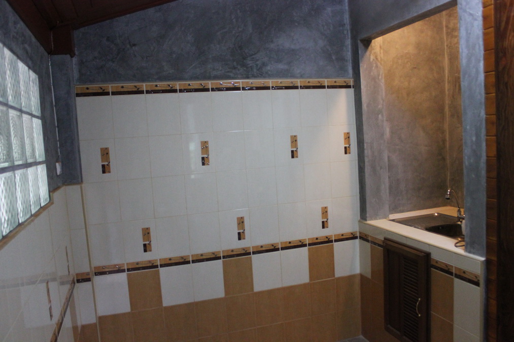 ครัวขนาดเล็กเป็นสัดส่วน มีประตูสไลด์ปิดกันกลิ่น และต่อไปคงจะ เทพื้นด้านนอกเป็นคร้วหุงต้ม และซักล้างโล่ง ดูโล่งแจ้งไม่อึดอัด ต่อไป