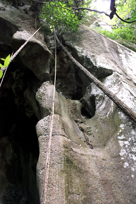 ผา สูงสิบก่วาเมตร ตั้งฉากพื้น ใว้ปีน ผา เกาะเถาเชือก ขึ้นได้หลายทาง แบบจะปีนหรือไต่ และมีช่อง หลืบถ้ำให้มุด ผจญภัยแบบเล็ก ๆ