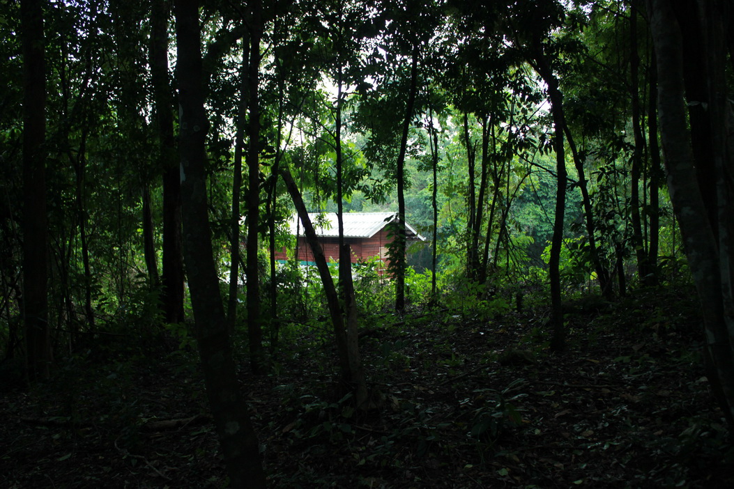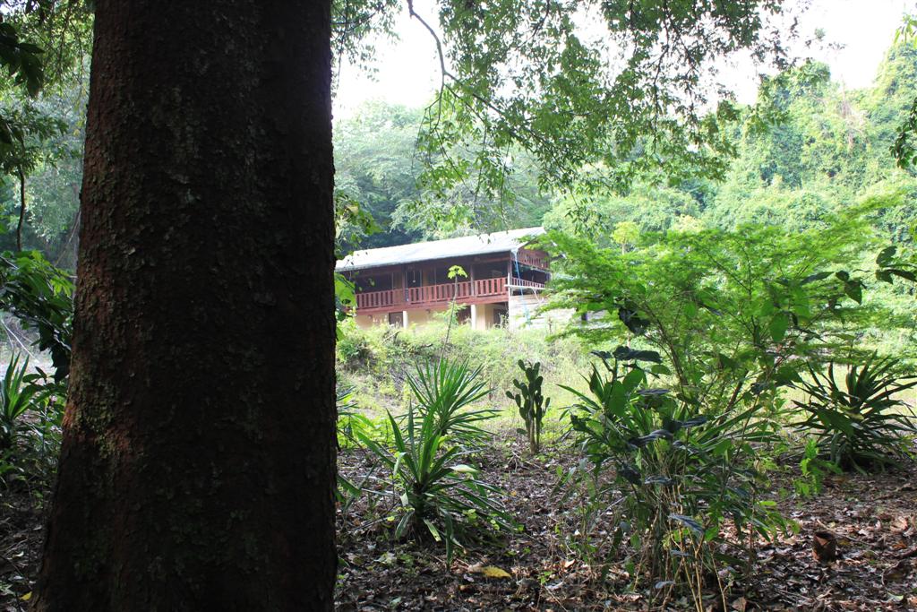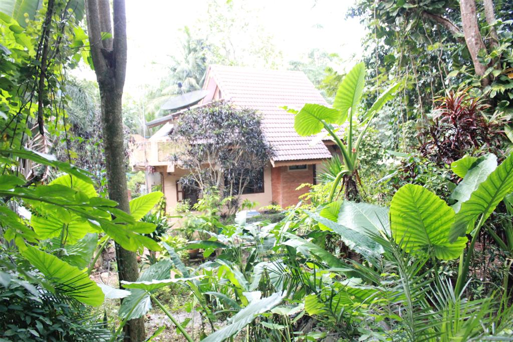 เดินรอบเขาก็มาออกด้านข้างบ้าน ป่าบอนป่าใบโต ๆ ใบใหญ่ ๆ