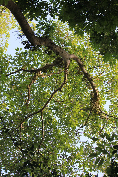 โหม่งเหรียง ที่ออกมาก จนต้องสลัดออกจากต้นบ้างเพื่อสมดุลพันธุ์ หล่นเต็มพื้น ดอกแตกร่วงออก หากดอกติดโหม่งไม่ร่วงก็สลัดดอก แตกฝักหลาย ๆฝักออกมา