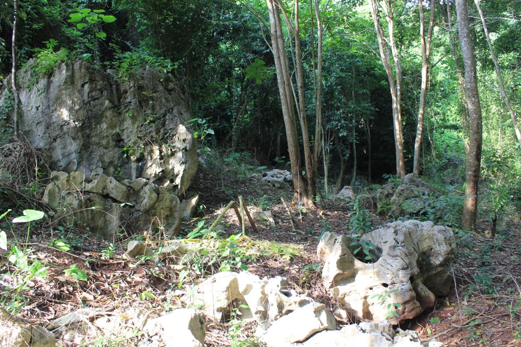 ไหล่เขาหินปูนทำใ้เตียน ใม่รก มีโคดหินใหญ่ ผิงเกลี้ยง แปลก ๆตา