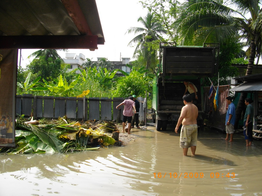 ที่ดินบ้านถมเป็นที่ลุ่ม ต่ำกว่าถนนเพชรเกษมอยู่ประมาณ 1เมตร ทุกครั้งที่ฝนตกหนักมักจะมีน้ำท่วมขังต้องวิดกันตลอด