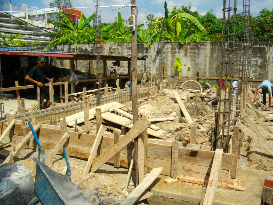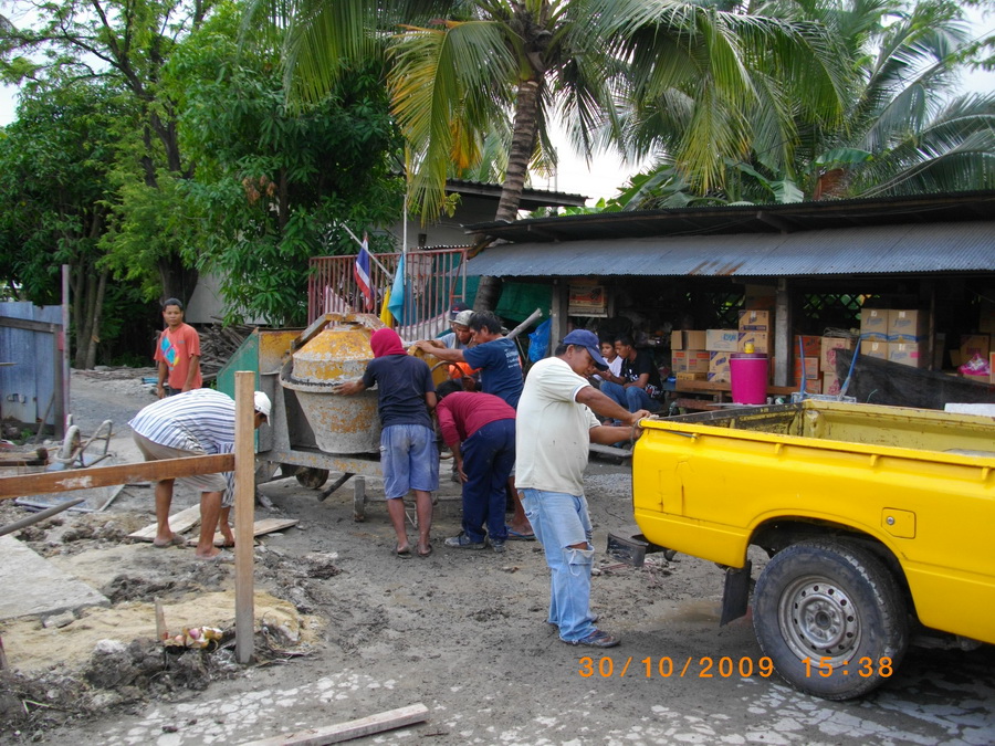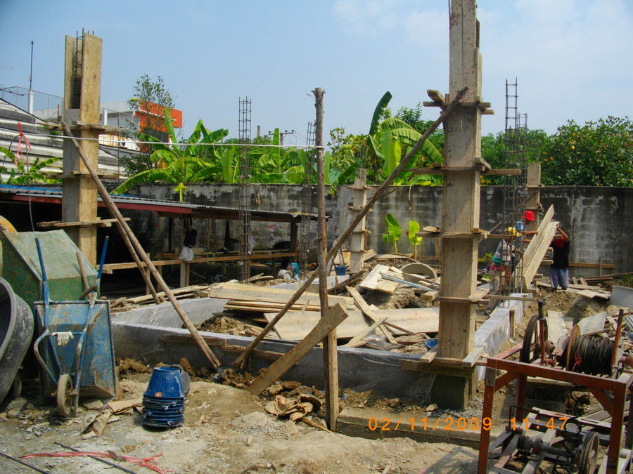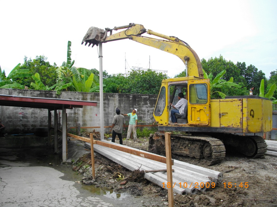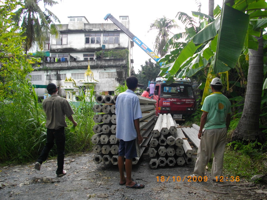 เสาเข็มถูกส่งเข้ามาอย่างทุลักทุเล ยากกว่าสิ่งใดทั้งหมด เพราะทางเข้าแคบ เลี้ยวหักศอก ทางเป็นดินอ่อน ต้องกองไว้ห่างจากที่ก่อสร้างแล้วใช้รถแบคโฮลาก