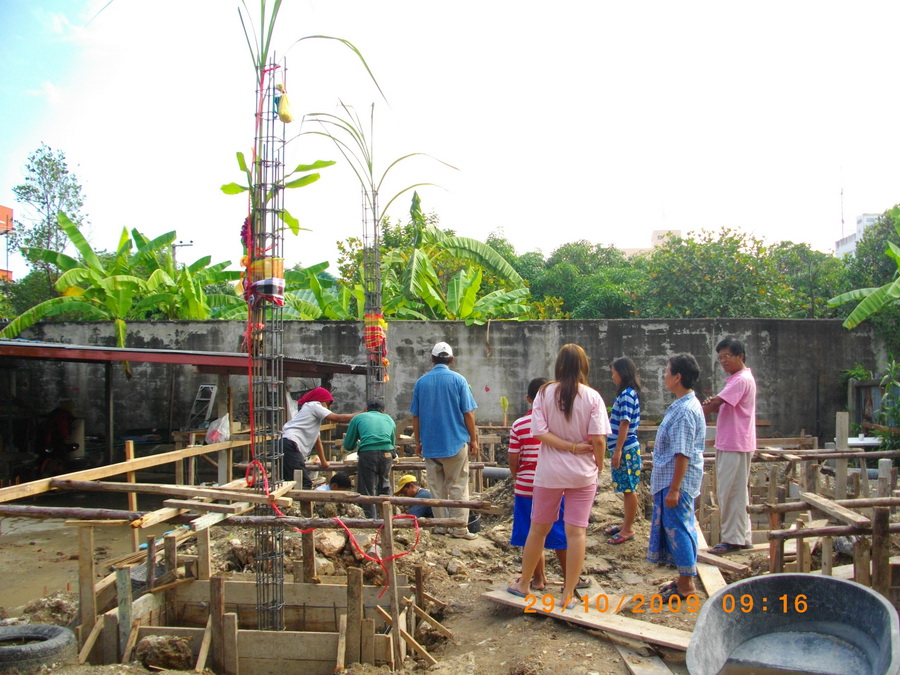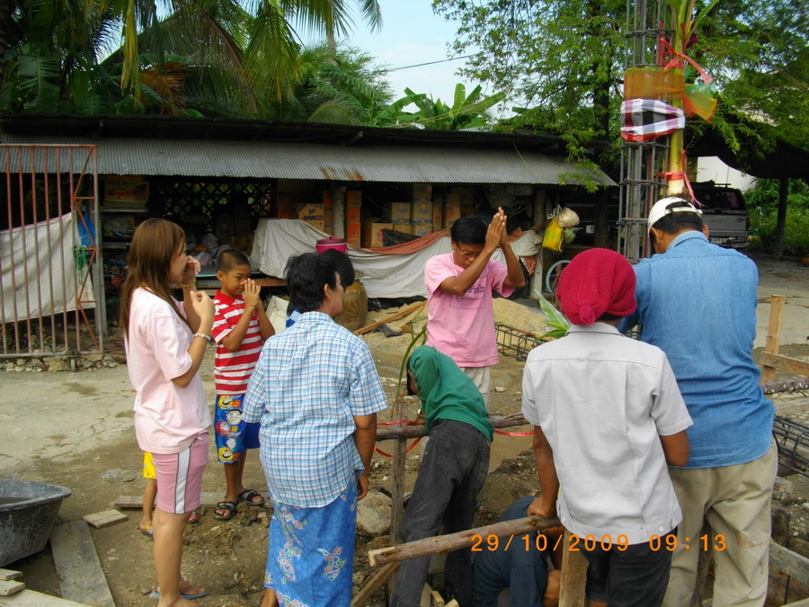 คุณแม่ช่วยพรมน้ำมนต์เพื่อความเป็นสิริมงคลแก่บ้านผมทั่วทุกหลุมฐานรากให้มั่นคงยั่งยืน