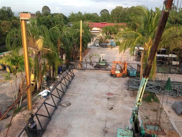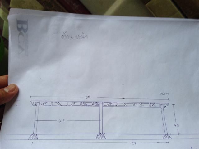 สรุป ได้พื้นที่ลงตัวแบบไม่เหลือเหล็ก ขนาด 20 ม. x 32 ม. สูง 8 ม. .............. ท่าทางไปได้สวย แต่ ...!!!!!!!!!!!!!!.....สรรหา หาผู้รับเหมา มา 3ราย ส่ายหน้า บอกทำยาก 2 ราย เหลือ อีกรายเสนอมา ตรม. ละ 150 (เฉพาะค่าแรงด้วยแบบว่า..มาแต่ตัวกับหัวใจ เครื่องไม้เครื่องมือไม่มีมา) เซ็งจิตรเลย ค่าแรงตั้งเสา+โครงหลังคา (ไม่รวมฐานราก และ ค่ามุงเมเทลชีท) ดีดออกมา 90,000 บาท
