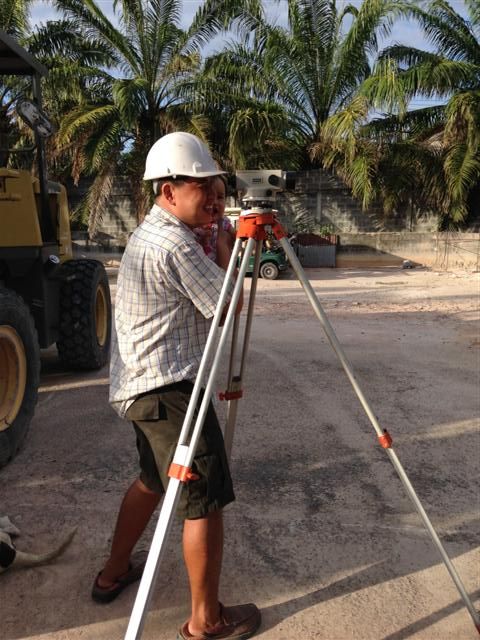 เดินหน้าหายืมกล้องเช็คระดับ มาส่อง ..จิงๆไม่เคยจับเลย ถามวิธีใช้จากเจ้าของกล้อง และคนงาน พอกล้อมแก้มไป กับการเช็คระดับด้วยระบบสายยางระดับน้ำแบบดั่งเดิม